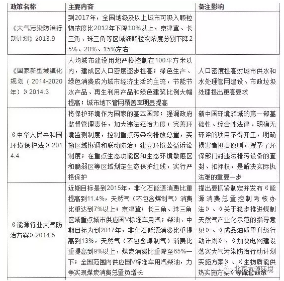 環保行業對於政策比較依賴。近年來,以「三大計劃」為引領,政府多個環保政策相繼出台,並且發佈了一系列的十三五子行業環保規劃,每個規劃或計劃涉及的投資都是成千上萬億。正是由於未來龐大的市場开展空間,吸引了資本關注。